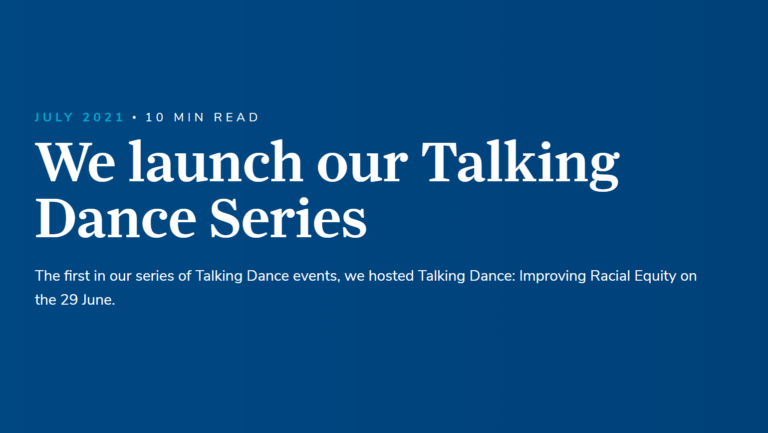 The first in our series of Talking Dance events, we hosted Talking Dance: Improving Racial Equity on the 29 June. Made possible by the society’s grant from the Cultural Recovery Fund, the event brought together leading organisations to discuss the roadblocks to achieving diversity in dance education and training and how these can be dismantled at every level of dance teaching, creating a vision for a future of inclusive and diverse dance.